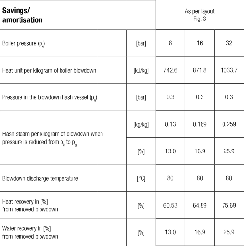 No cabe duda de que la recuperación y el ahorro energético real dependen por completo de una serie de variables, pero incluso en circuitos relativamente simples que recuperan la energía de la purga para su reutilización, la amortización podría oscilar entre 4,0 y 5,3 meses (para volúmenes de purga de 300 kg/h).