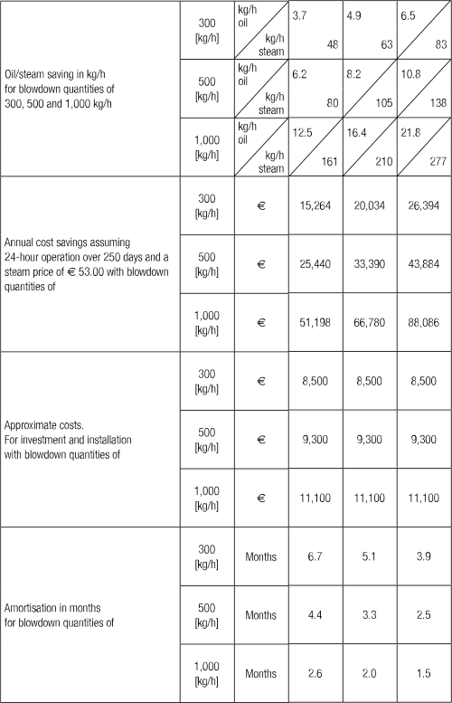 En el caso de circuitos sofisticados con vapor flash que utilizan parte del calor de la purga para calentar y purgar el agua de alimentación, los ahorros de los costes anuales podrían generar cientos de miles de euros solamente con una inversión relativamente modesta.